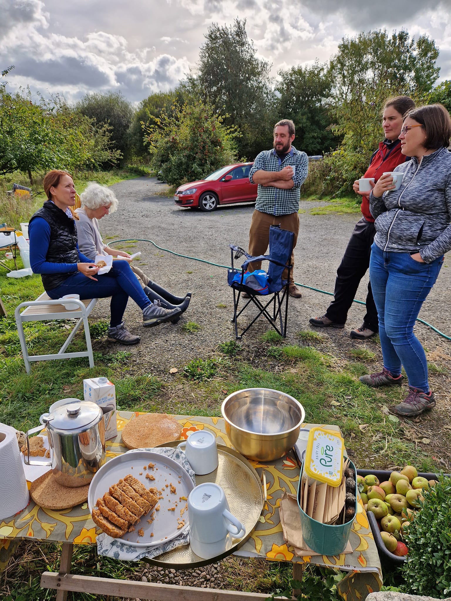 This is a delicious cake to slice and have with a cuppa. The mid morning break for the apple pressing team was lovely. The apple sauce is the binding agent and it works to a T.