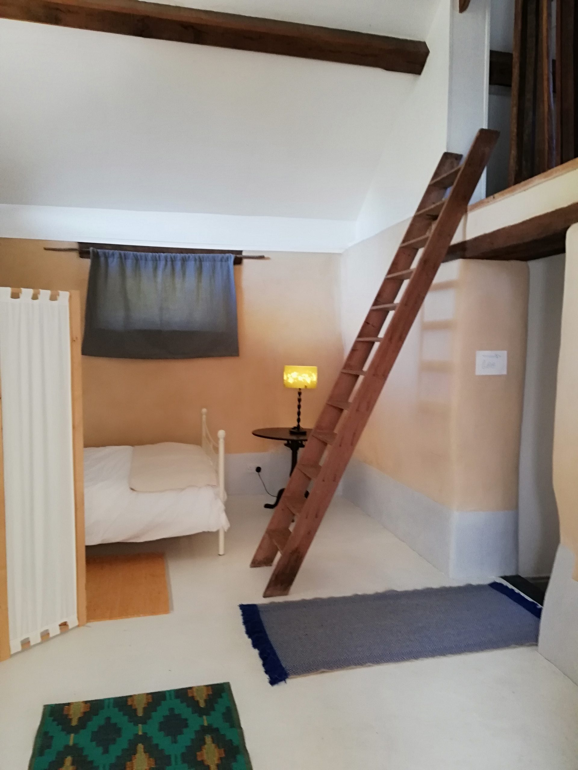 - Oak, a loft space up a ladder with a double futon bed