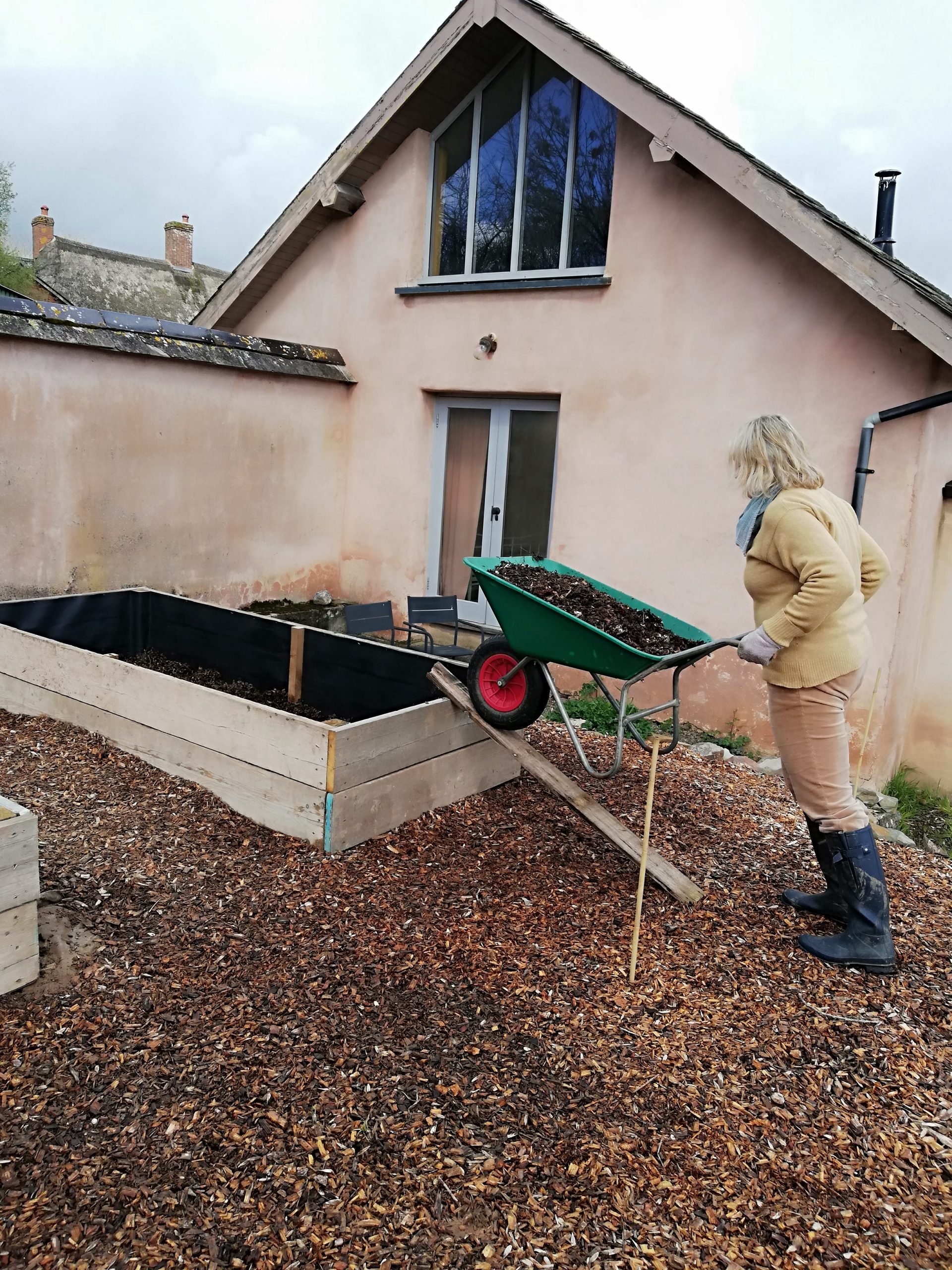 2020 -21 during the pandemic there were no major projects but there was more biodiversity in the meadow-ising fields, the new trees mostly grew above head height, the hedges thickened, there was super duper veg from the raised beds in the kitchen garden and the ornamental garden grew floriferous with home-sown annuals. A deck was built that linked the Bliss Barn to the kitchen garden.
