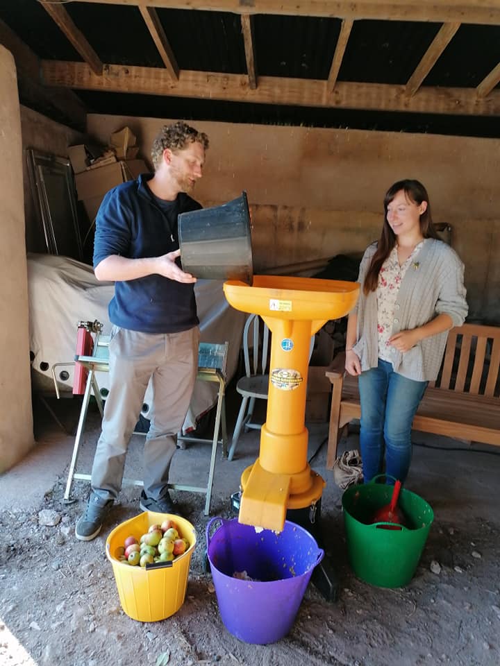 2017-18 was the season of tree and hedge planting on a massive scale – 600 trees and 600 hedge plants in and on the margins of the Hare Field – with the help of many volunteers and our first community event: read this report. The summer saw a drought and a good crop of hay when otherwise there was little for sale. A yoga student farmer friend said ‘cut it!’, though I quibbled about losing possible vegan organic status. It was cut and sold to another student who has an ethical stud, and to a sheep sanctuary. Already inspired by the amount of insect life and a range of meadow flowers arising once grazing has stopped, I began to see how the field could be meadow-ised. We had our first apple pressing day. This brought together neighbours, community, yoga students and other friends, and raised some money for a much loved local couple who had lost their business.