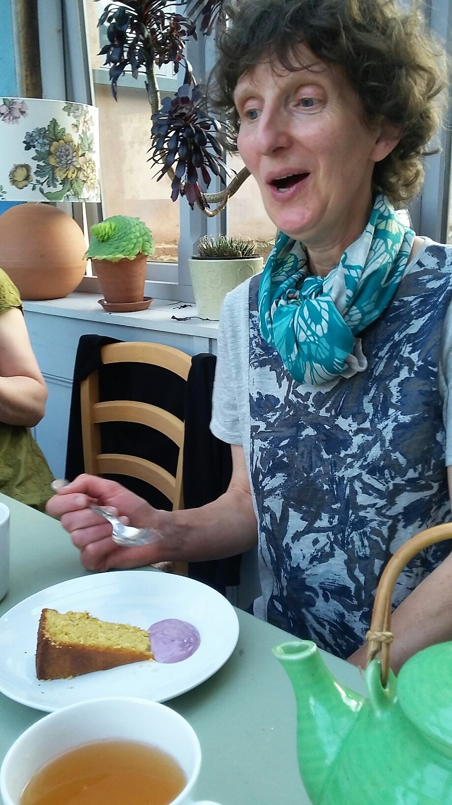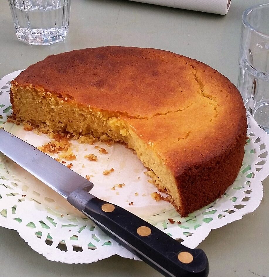 You may have to source the ingredients especially but it really is an easy cake. You can make it quickly and get to remember the recipe so it’s easy to do again and again. What’s more, the flours used are proteinaceaous, especially in combination: gram, which is chickpea flour, polenta, which is maize flour and ground almonds. This could make a balanced meal together with a light or salady main course that doesn’t have hard proteins. Have your cake and eat it!