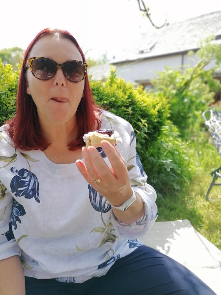 Tips for tall scones: warm milk, handle the dough as little as possible, 4cm deep, warm the baking tray, use a smooth not crinkled cutter, get in the oven asap. Oatly whippable, for example, is creamy but would probably have to go on second as it is light (horror, and don’t tell the neighbours). If you want extra fat, I guess you can have vegan butter too.